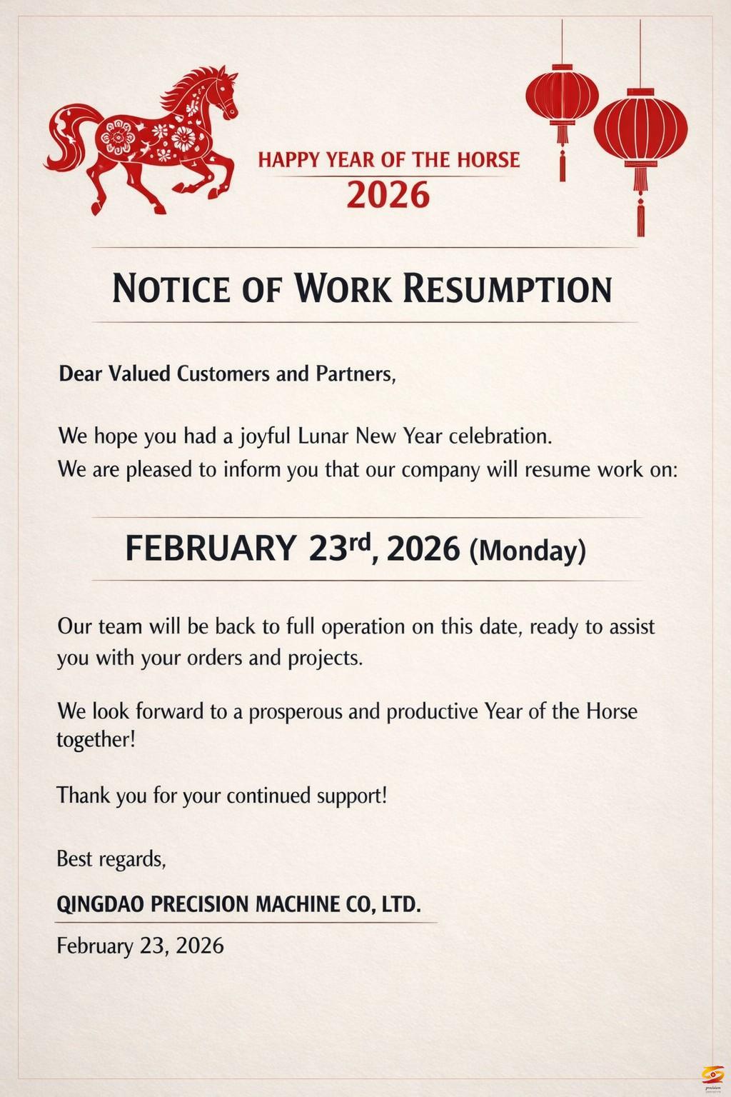 NOTICE OF WORK RESUMPTION